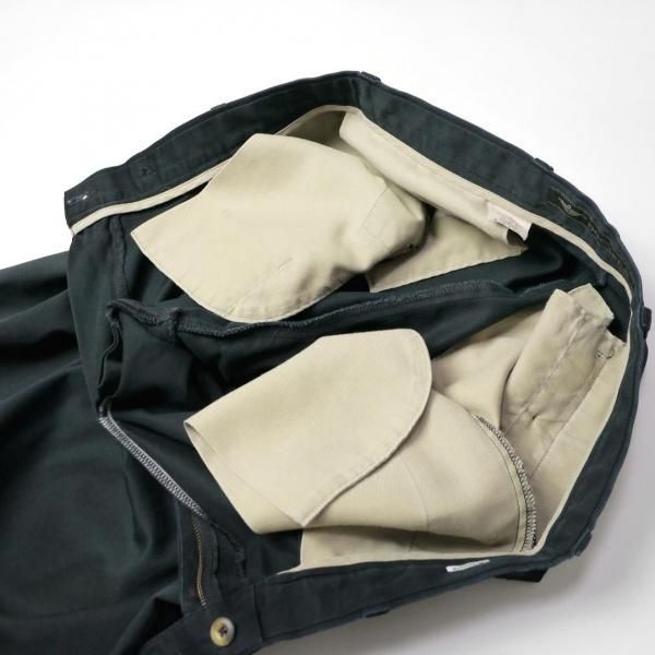 90年代-00年代(2000年製)のアイテムでモデル名はオデッセイツイル、シッカリとしたオールコットン生地のタイプです。ツータック入りのほどよくユッタリとしたシルエットで裾はダブルになります。
