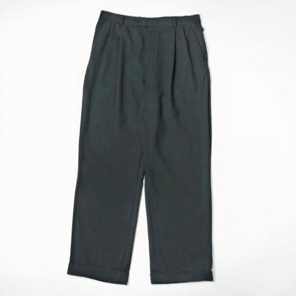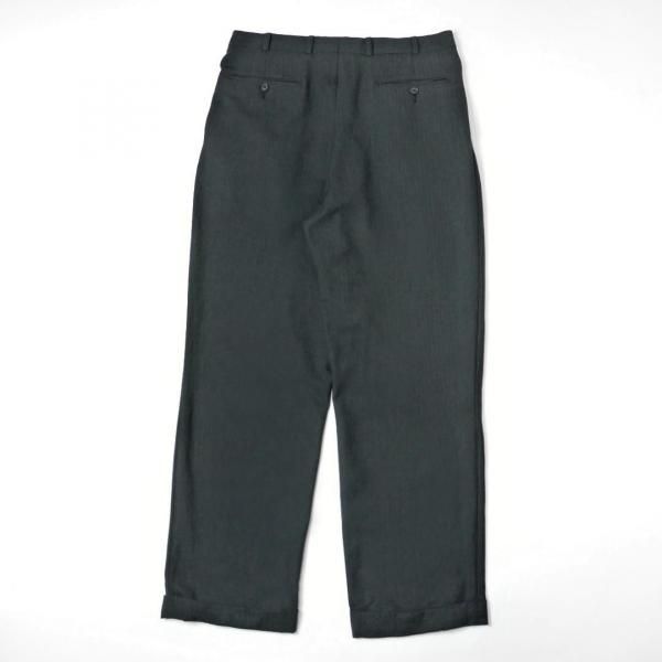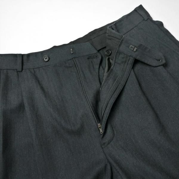 00年代(2007年製)のアイテムで生地はウールヘリンボーンのストレッチタイプ、薄めの柔らかな穿きやすい生地感になります。シルエットはツータック入りでユッタリとしたつくりです。