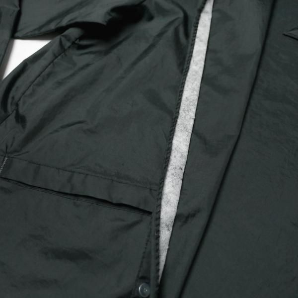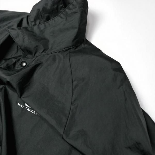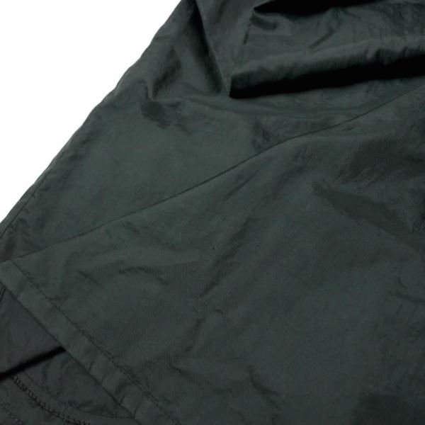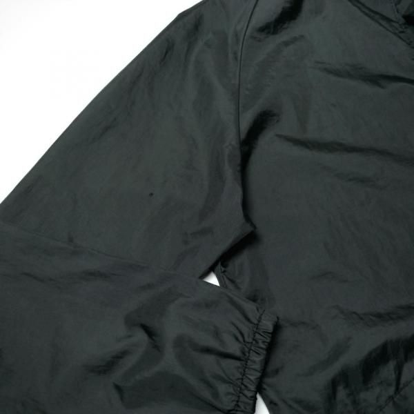 ナイロン特有のシワ、フチに多少のテカリ、スナップ塗装に多少の削れ、袖先ゴム伸びきり、左肩やポケット付近などに小さなスレあと?(テカリ)、右腕に小穴、右前や裾後ろなどに伝線あと、裏側ロック縫いにホツレ数点あり。