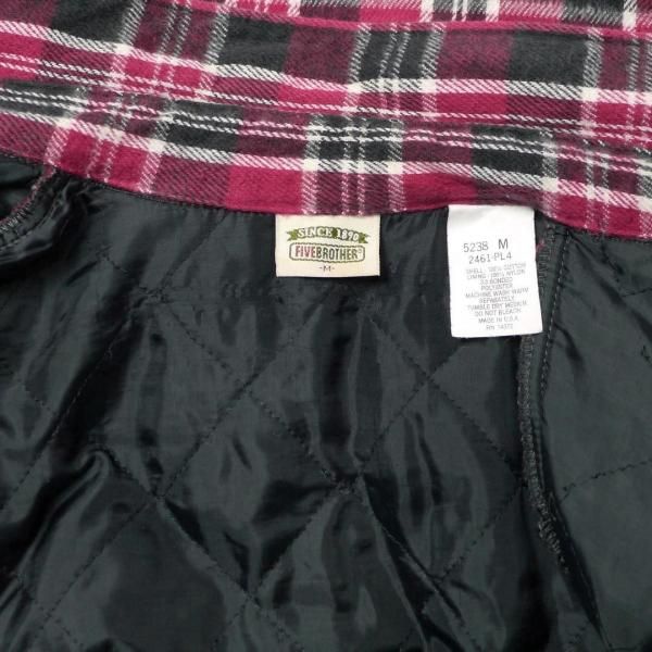90s FIVE BROTHER キルティング ライナー ネルシャツ アメリカ製
