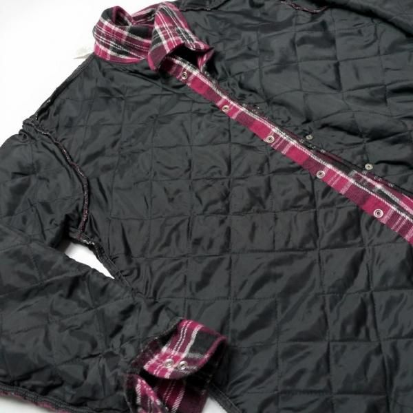フランネル特有の毛羽立ちと多少の毛玉、多少の古着臭、ナイロン生地に伝線あと多数(首下、前側)&ミリ単位の小傷、キルティングステッチに多少のくたり&抜けと解れ多数あり。