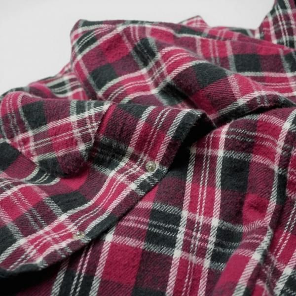 90年代ごろの旧タグでアメリカ製になります。生地はオールコットンフランネル、結構起毛したタイプで厚みはミディアムウェイトくらいの感じだと思います。
