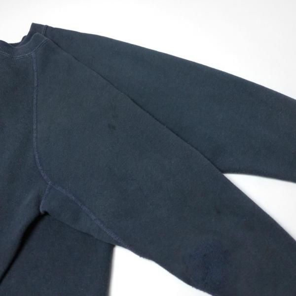 多少の毛玉と毛羽立ち、フェード、アタリ、タグ欠損、フロッキーに多少の削れと点汚れ、全体に薄汚れと小染み多数、右肘にタタキ補修と汚れあり。