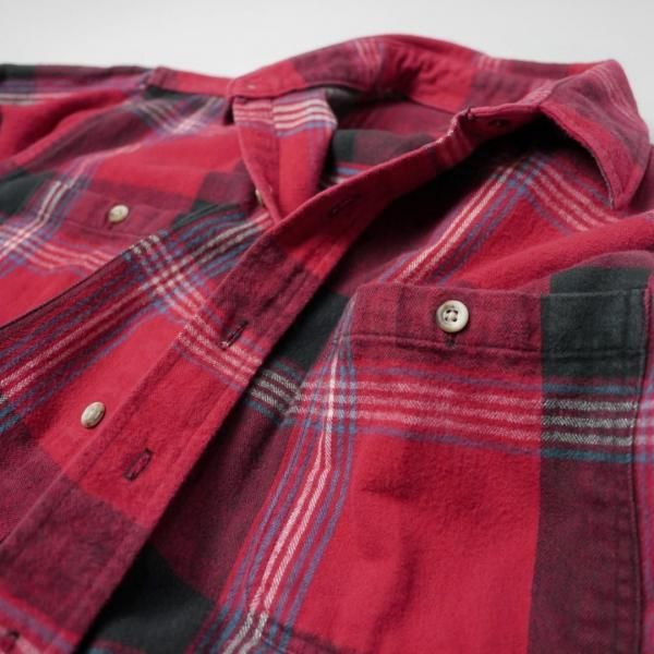 生地はオールコットンフランネル、いわゆるヘビーネル系でミディアムウェイトくらいの感じだと思います。人気のビッグサイズ/オーバーサイズです!!