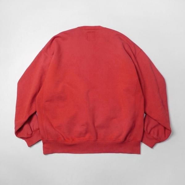 全体的にフェード、色ムラ、裏側に毛玉、刺繍ロゴ付近に小さな薄染み、前下方にミリ単位の色落ち、 後裾リブフチにケズレ、左袖と左裾にピンホールあり。