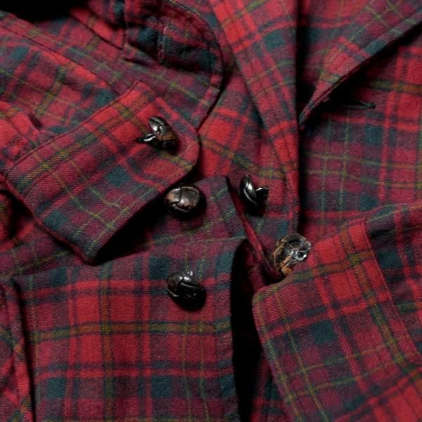 洗濯による多少の縮みシワ、タグに小穴、脇下付近に多少の手縫いリステッチ、レザーのくるみボタンにカサツキ(ケズレ)&縫い直し数点、袖先ボタンにワレ?の接着補修あり。
